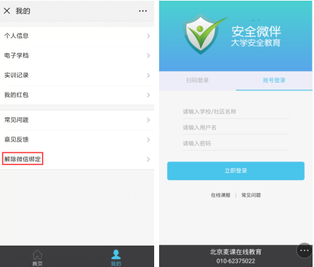 A:第一种解决方法是:在学习页面【我的】里面找到【解除微信绑定】,如果没有显示“解除微信绑定”按钮需清理一下手机微信缓存即会出现;